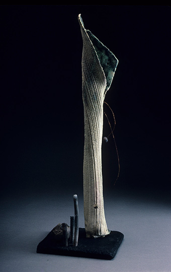 wire, steel rods, paper pulp, leaves, wood, linen thread, pigment,