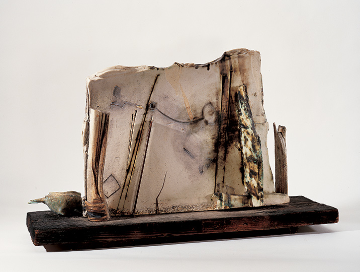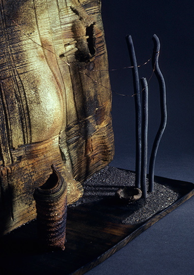 Soft Exit 22 1/2" h x 16 x 8 clay, wood, fired sand, wire, mirror