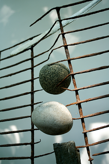 Playday with Anne steel, stone, bone, bronze 48"h x 12 x 12