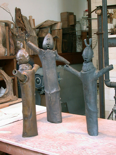 The strength and solidity of bronze has offered me yet another way to connect and transform diverse materials. Working with bronze was a new challenge and I became a beginner again. My first bronzes, The WomanSpirit Series, came directly from the inherent gestures of the earlier Ancient Vowel Series. These elemental figures in clay and bronze - witnesses, guardians, angels - embody for me the union between the forces of earth and spirit.
